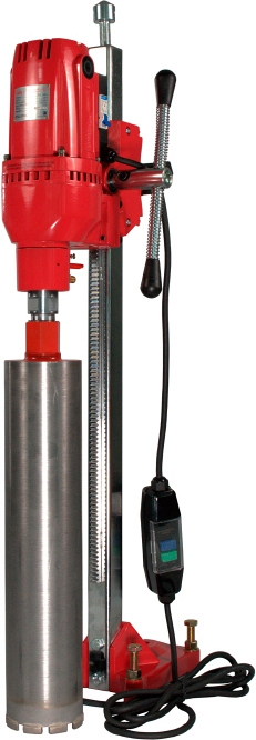 Алмазная сверлильная установка Voll V-Drill 160 (Волл В-Дрилл 160) с мощным двигателем 3,2 кВт предназначена для сверления отверстий Ø 15 – 160 мм в бетоне, железобетоне, включая железобетон с высокой степенью армированности, кирпичной и каменной кладке, граните, мраморе, под прямым углом, с подачей воды. Идеально подходит для строительных и монтажных организаций и фирм, занимающихся монтажом систем отопления, водоснабжения, вентиляции, кондиционирования, а также прокладкой электрических сетей, слаботочных систем. Благодаря компактной конструкции и относительно малому весу обеспечивается легкая транспортировка, а также монтаж и демонтаж установки на рабочем месте.