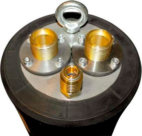 Проходная пневмозаглушка с 2 каналами для испытаний трубопроводов Vetter PDK 170/200 FLEX (Веттер ПДК 170/200 ФЛЕКС) – многоразмерная цилиндрическая пневматическая заглушка с 2 проходами для проведения испытаний на герметичность воздухом или водой (согласно EN 1610), временного перекрытия или дозированного отвода (перенаправления) сточных вод или потока жидкостей трубопроводов канализации при возникновении протечки (изменение трассы), ремонта (реконструкции) и контроля участков трубопровода Ø 1700 – 2000 мм (67" – 78,7").
